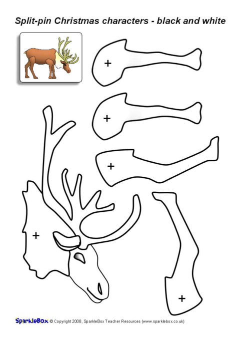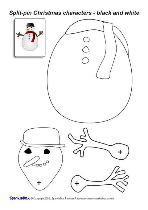 A set of printable outline body parts which can be coloured by your child and assembled into Santa, a snowman or reindeer using split-pins.