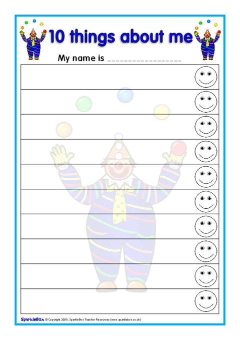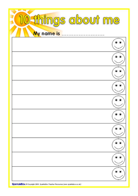 10 Things About Me Sheets (SB1909) - SparkleBox