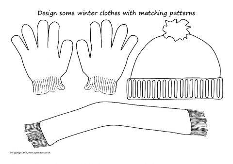 A worksheet featuring blank gloves, hat and scarf that children can add their own matching patterns too.