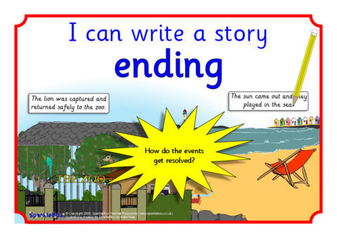 3 colourful posters to act as visual prompts when discussing story beginnings, middles and ends.