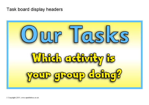 A set of printables for your classroom Task Board display. Includes various headers such as ‘Our Groups’, ‘Our Tasks’ and headings for up to 6 different tasks, including a ‘When your finished...’ task header.