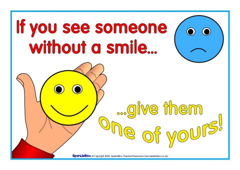A simple sign for your classroom door (or around the school) that reads ‘If you see someone without a smile... give them one of yours!’.