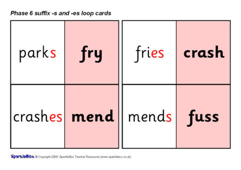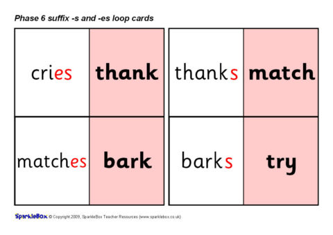 Phase 6 Suffix -s and -es Loop Cards (SB2130) - SparkleBox
