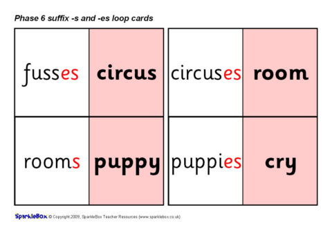 Phase 6 Suffix -s and -es Loop Cards