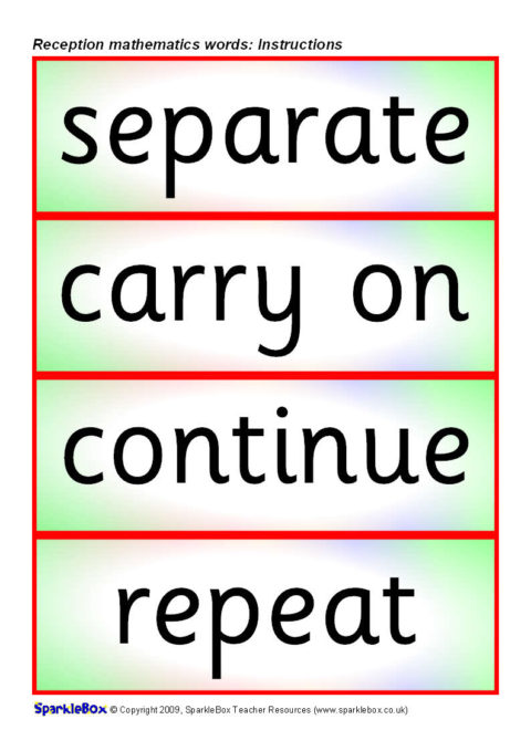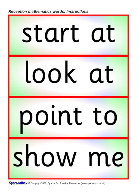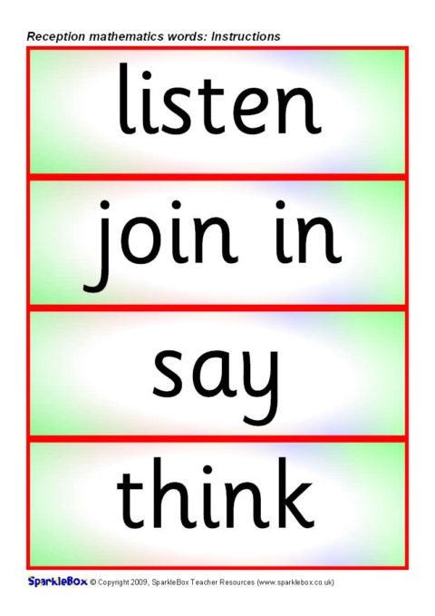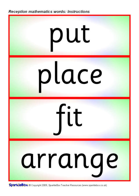 Reception Maths Vocabulary Cards: Instructions (SB2174) - SparkleBox