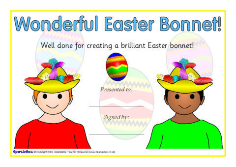 A set of certificates to present to children at your Easter Bonnet Parade or for creating their own Easter bonnet.