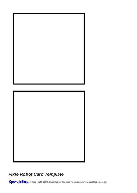 A simple printable template (for Microsoft Word) that allows you to add text and pictures onto cards sized 11cm x 11cm, for use with a Pixie robot.