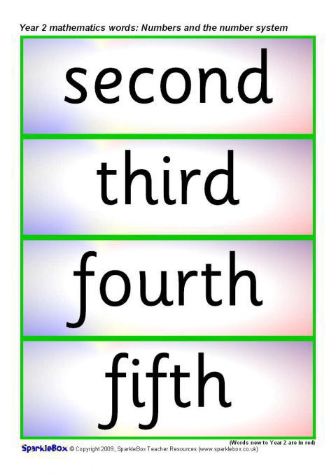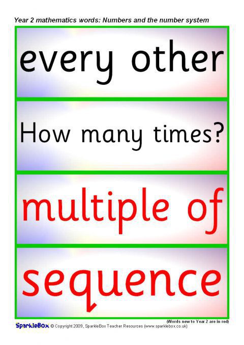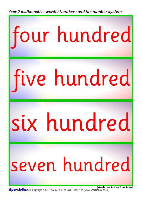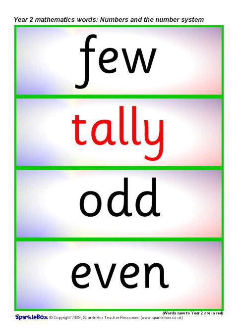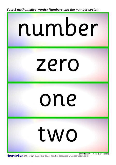 Year 2 Maths Vocabulary Cards: Numbers and the Number System