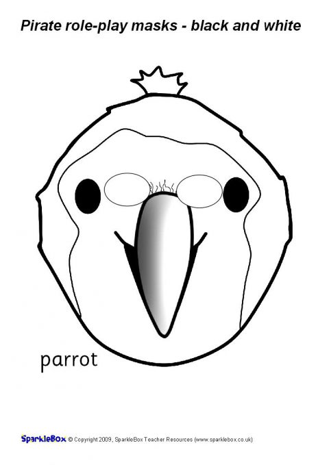 A useful group of pirate-themed printable masks for role-play.  Includes different pirates (for boys and girls) together with a parrot, monkey and colonial officer masks.  Simply print out, colour, laminate, cut out and attach to lollipop sticks!