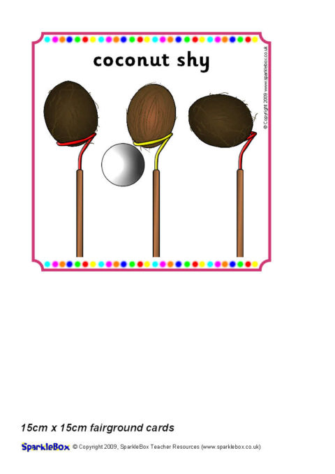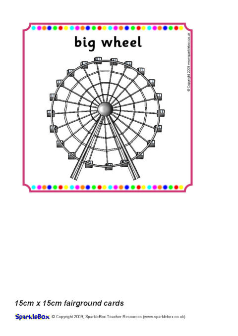 Multi-use printable cards with pictures of places at the fairground.  Each card is 15cm x 15cm in size and can be used for all sorts of games.