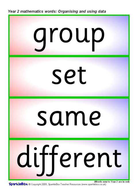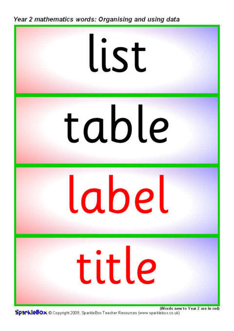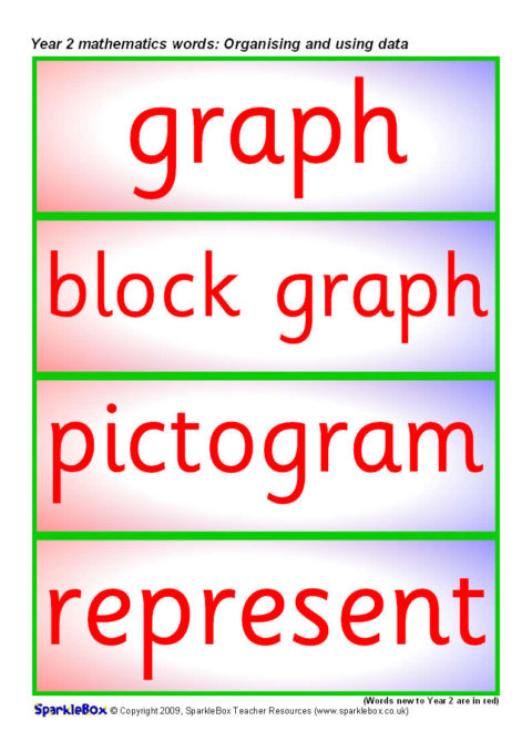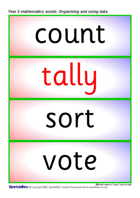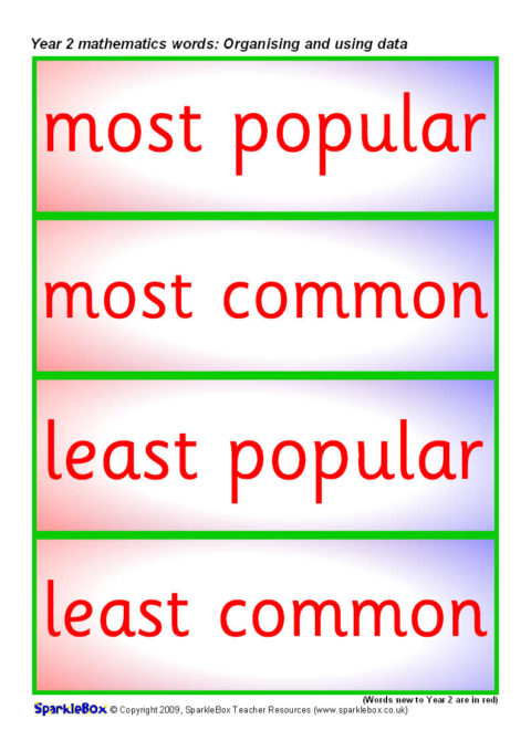 Year 2 Maths Vocabulary Cards: Organising and Using Data