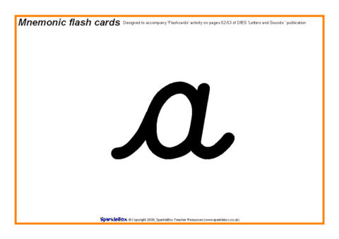 A set of A4-sized visual aids for use in the suggested ‘Flashcards’ activity on pages 52-53 DfES ‘Letters and Sounds’ publication.  Includes 23 phonemes from Phase 2 and accompanying mnemonic images that can be printed on the reverse of each sound.