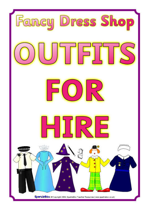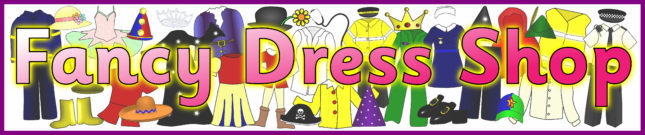 A set of printable resources for your Fancy Dress Shop role-play area.  Includes useful signs, posters and a banner.