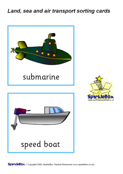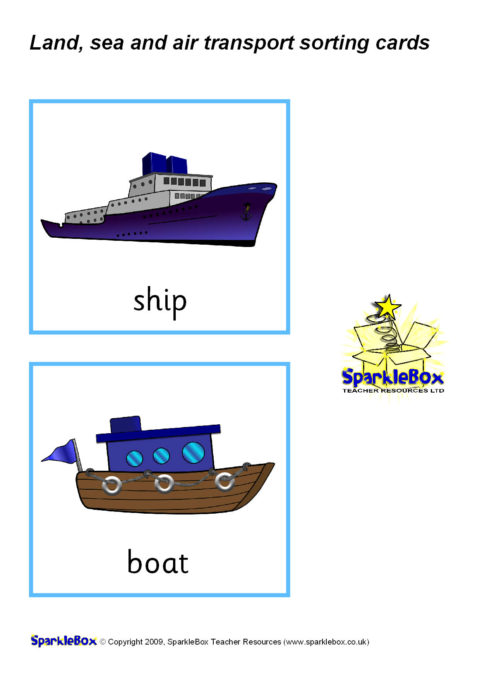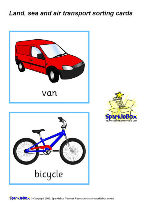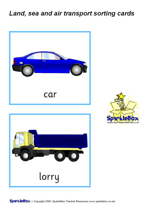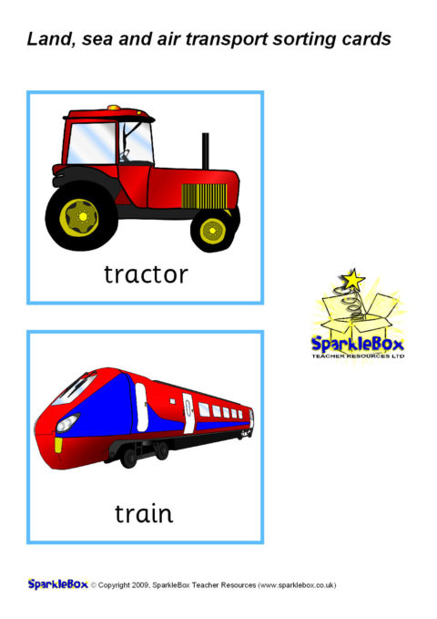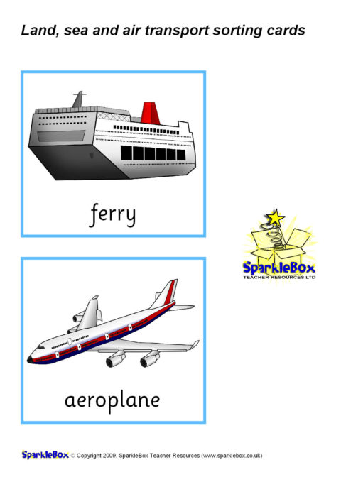 A set of printable transport picture/word cards that can be used for sorting into land, sea and air modes of transport.