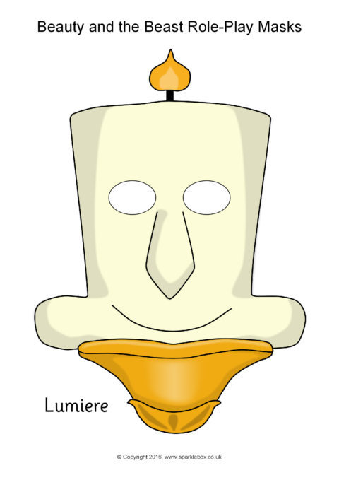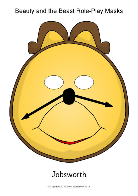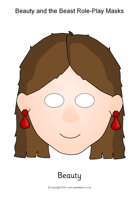 A set of printable cut-out masks for role-playing the story of Beauty and the Beast.  Simply cut out the eye-holes, laminate and attach to a stick for children’s role-play or to retell the story.
