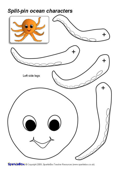 A group of 10 body part sets which can be assembled into split-pin characters with moving parts. Includes octopus, mermaid, turtle, crab, shark and more! Children colour, cut out the body parts and use split-pins to join together at the appropriate places.