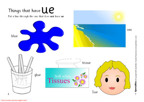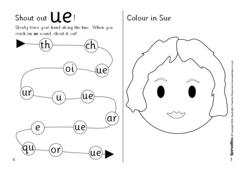 A set of sheets which can be assembled into an A5 folded booklet to give to pupils.  It includes activities to aid recognition of the ‘ue’ sound.  Ideal as a homework resource.