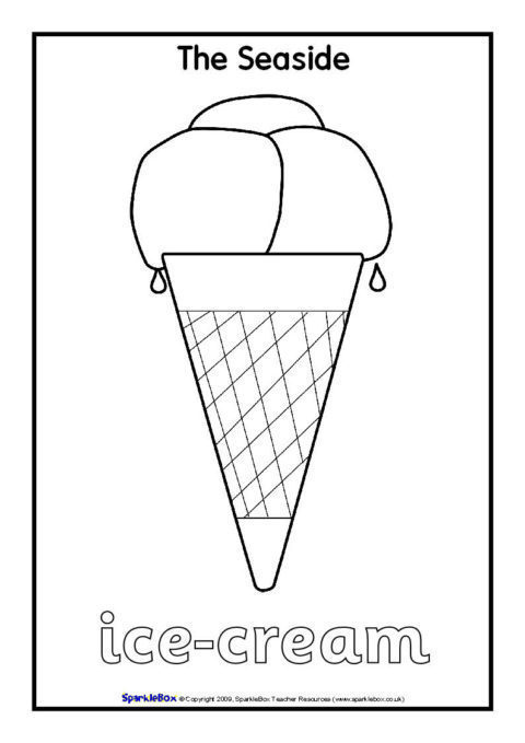 A useful set of simple colouring sheets featuring various items seen at the seaside.