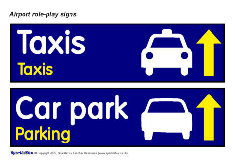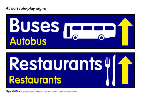 A set of printable signs for your airport role-play area. Includes signs for check in, arrivals, departures, fire exit, shops, taxis and more!