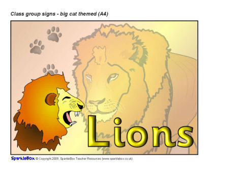 Big Cat-Themed Class Group Signs – A4 (SB2525) - SparkleBox