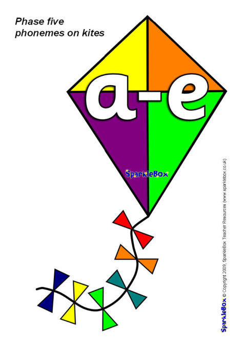 Phase 5 Phonemes on Kites (SB2531) - SparkleBox The lowercase Phase 5 phonemes, as specified in the DfES ‘Letters and Sounds’ publication, presented on brightly-coloured kites.