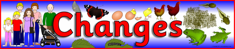 A colourful banner for your ‘Changes’ display about animal growth and life cycles.
