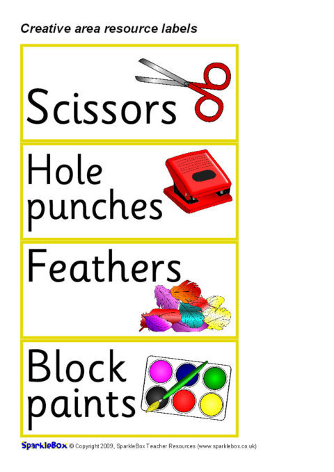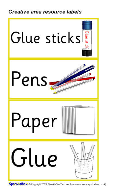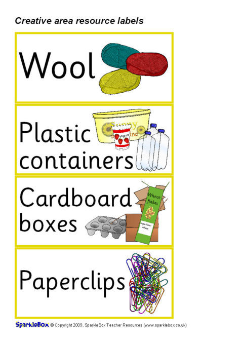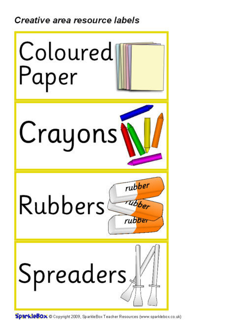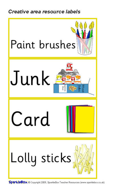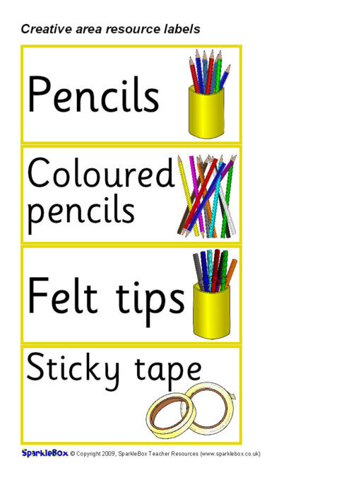 A set of printable resource labels for your Creative Area.