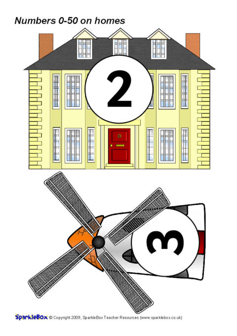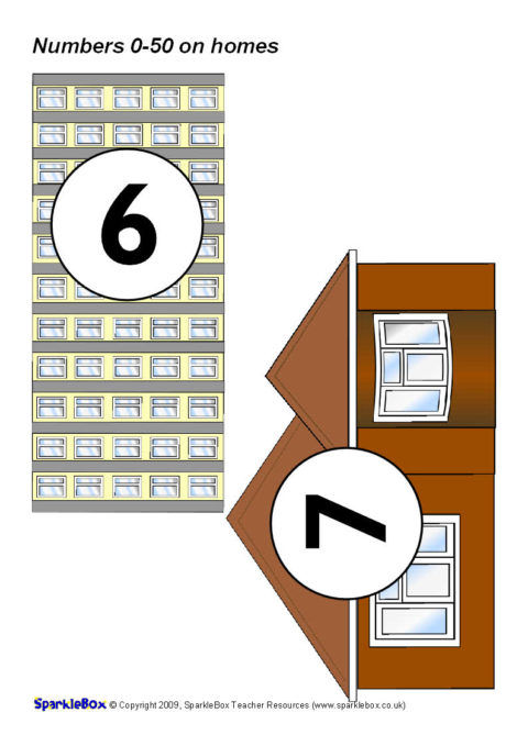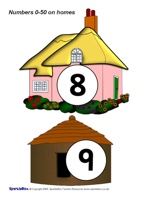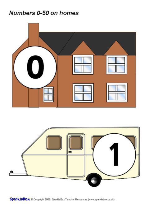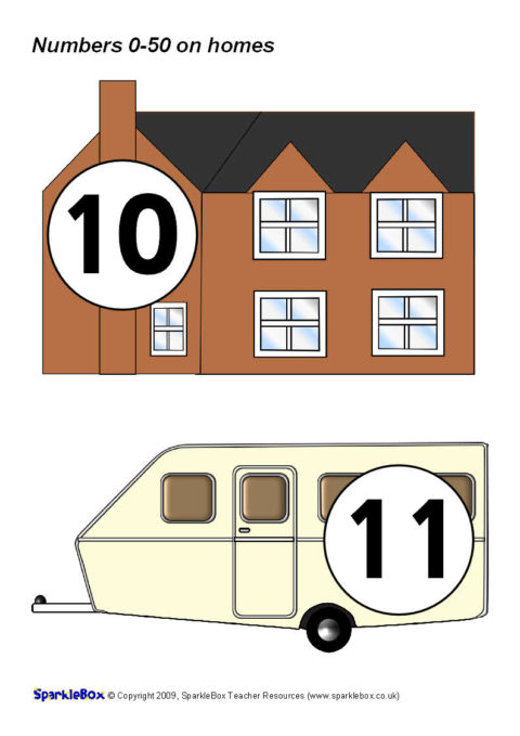 Numbers 0-50 on Homes (SB2544) - SparkleBox