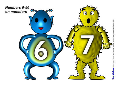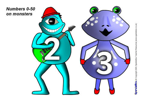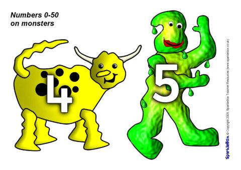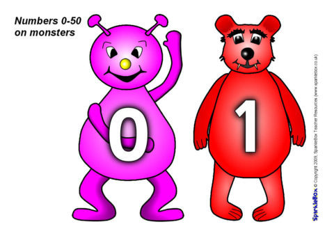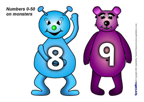 Numbers 0-50 on Monsters (SB2546) - SparkleBox The numbers from 0-50 presented on colourful monster characters.