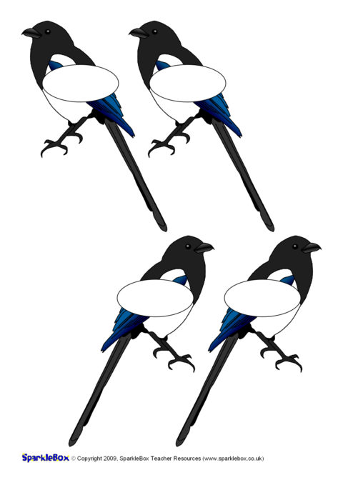 A template that allows you to add your pupil names to magpies. Add the names, print out & laminate.