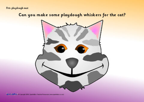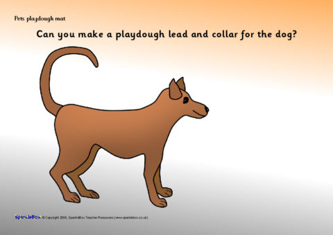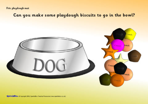 A set of 6 printable tabletop mats where children are encouraged to make various pet-related items from playdough.