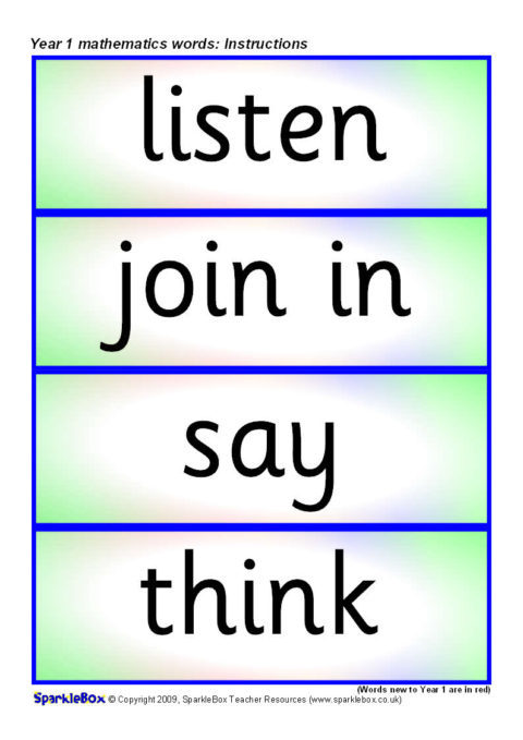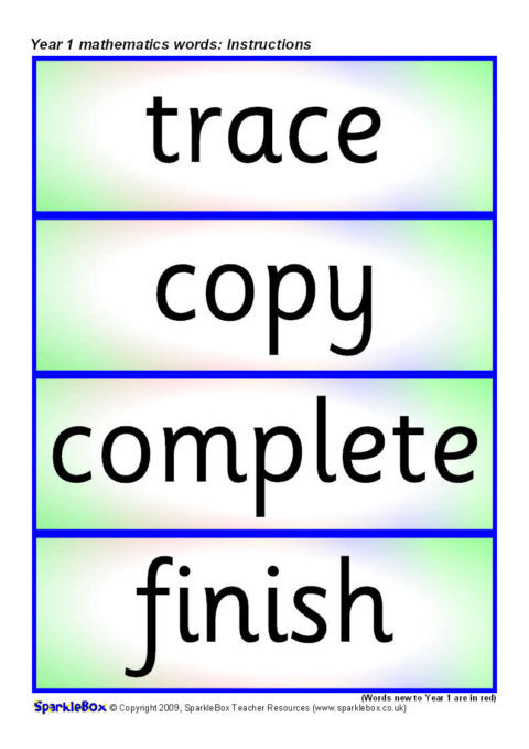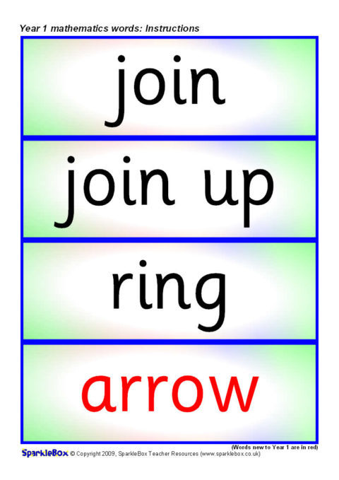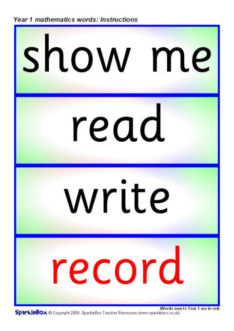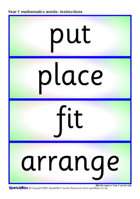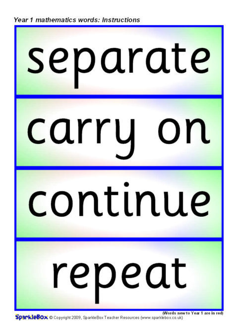 Year 1 Maths Vocabulary Cards: Instructions (SB2627) - SparkleBox