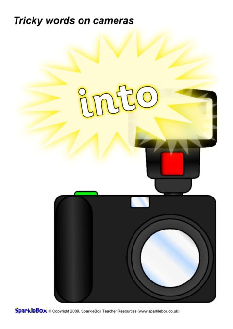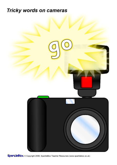 The 41 tricky words as specified in the DfES ‘Letters and Sounds’ publication, presented with cameras. You could call them ‘camera words’ that children must ‘photograph’ in their heads and learn by memory.