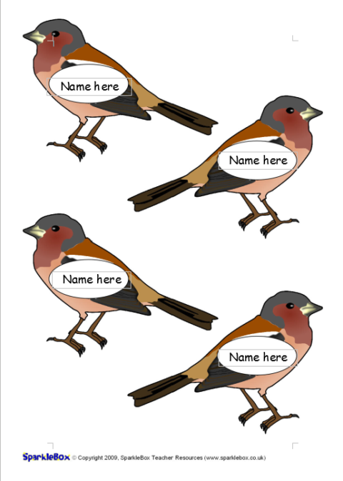 A template that allows you to add your pupil names to chaffinches. Add the names, print out & laminate.