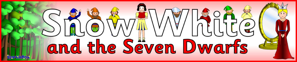 A colourful banner for your ‘Snow White’ display. Includes both ‘dwarves’ and ‘dwarfs’ spellings.