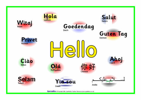 2 simple ‘Hello’ signs with greetings in different languages from around the world.