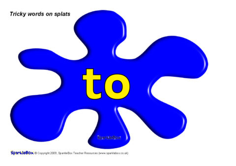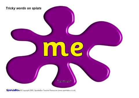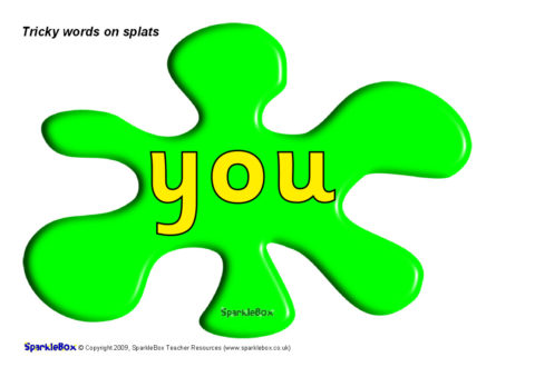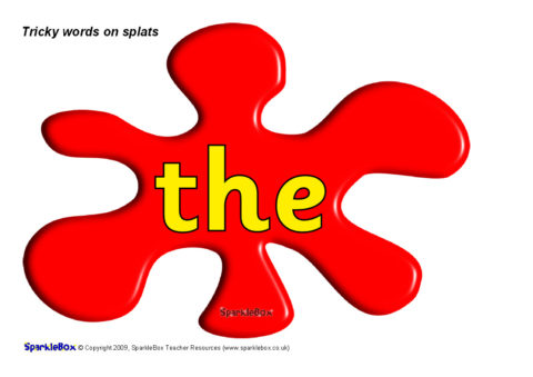 A colourful set of paint splats featuring the tricky words as specified in the DfES ‘Letters and Sounds’ publication. The images are A4 size by default, but can be resized in Adobe Reader to print 2, 4 or 6 per sheet.