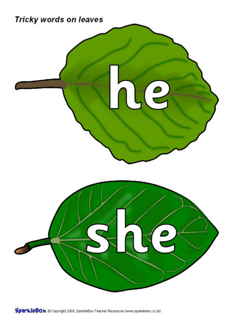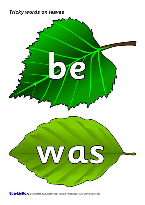 A set of printable leaves featuring the tricky words as specified in the DfES ‘Letters and Sounds’ publication.