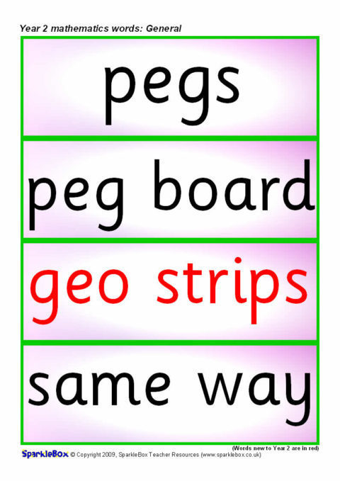 Year 2 Maths Vocabulary Cards: General (SB2962) - SparkleBox