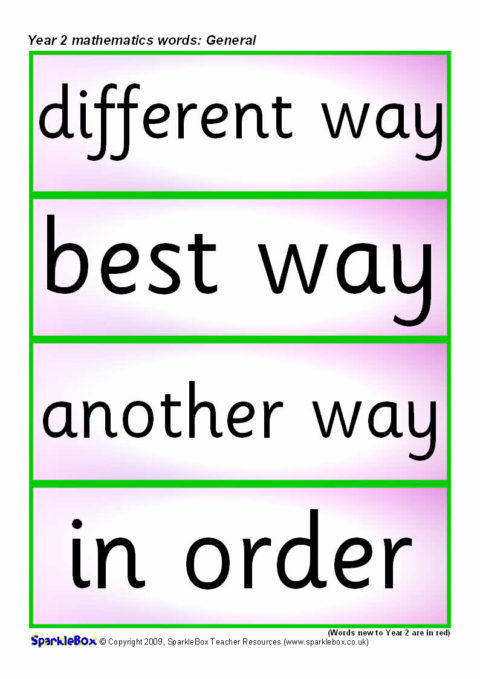 A set of printable cards featuring the additional ‘General’ mathematical vocabulary to be used in Year 2.