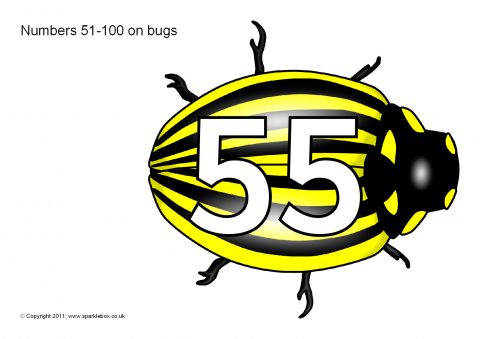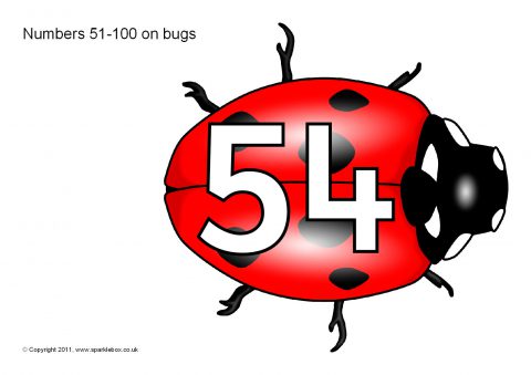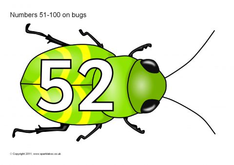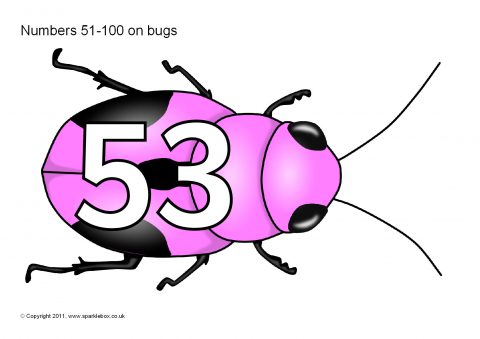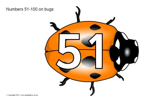 Numbers 51-100 on Bugs (SB2982) - SparkleBox Numbers 0-50 on bugs resource.">