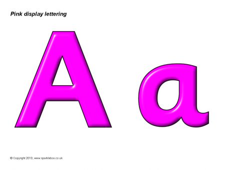 A PDF document with 26 alphabet letters (upper and lowercase) in a bright pink colour.  These are great for printing and cutting out for use on displays.