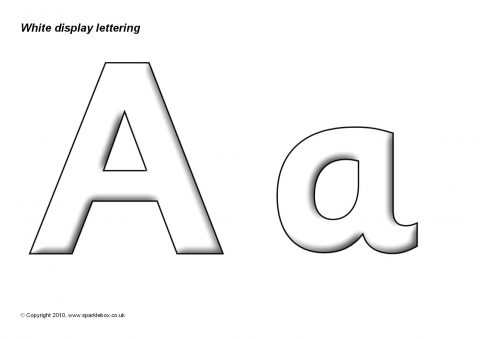 A PDF document with 26 alphabet letters (upper and lowercase) in white.  These are great for printing and cutting out for use on displays.