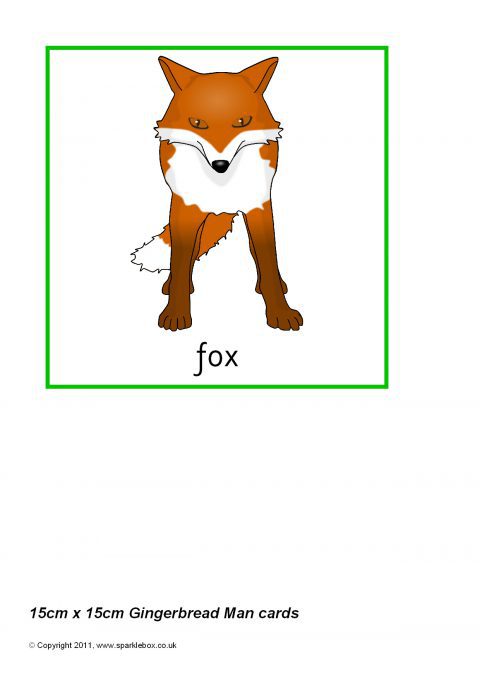 A set of printable cards (15cm by 15cm size) featuring characters, text and places from the traditional story ‘The Gingerbread Man’.  For use in all sorts of card-based activities.