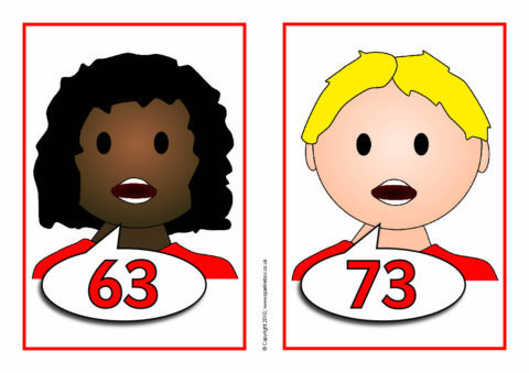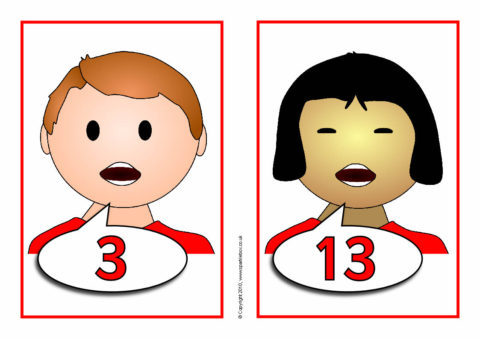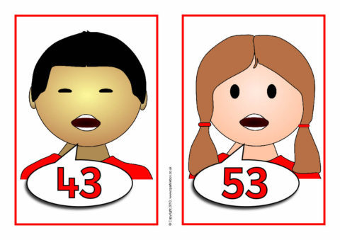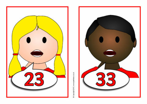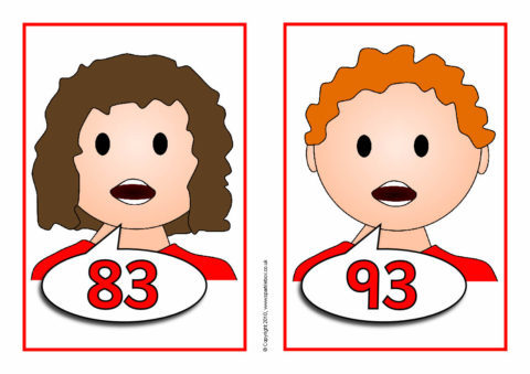 A5 flash cards featuring children saying numbers in 10s from 3 to 103.