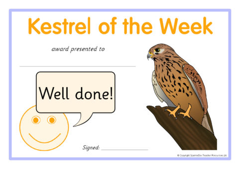 Kestrel-themed reward certificates to accompany the kestrel target sheets.