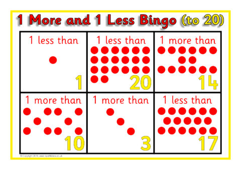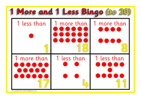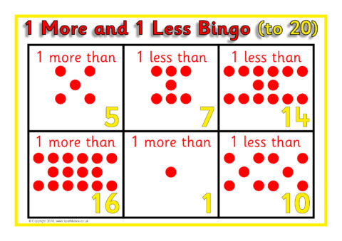 1 more and 1 less Bingo to 20 (SB3146) - SparkleBox