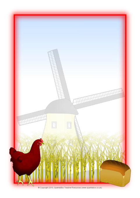 Portrait and landscape Little Red Hen story A4 page borders. Includes editable Microsoft Word templates as well as resizable JPG images.