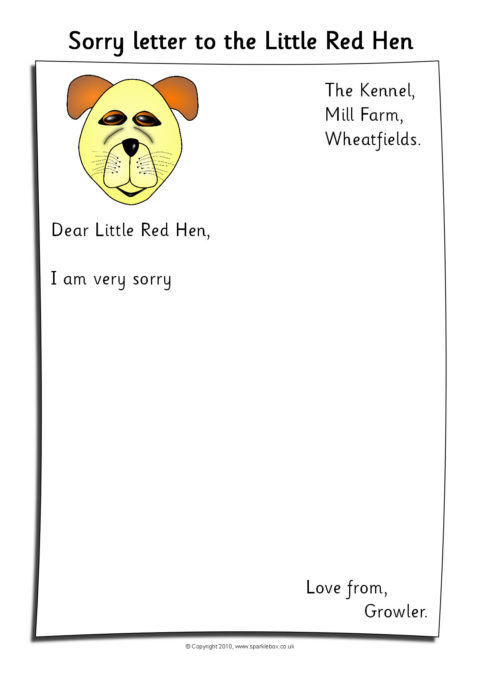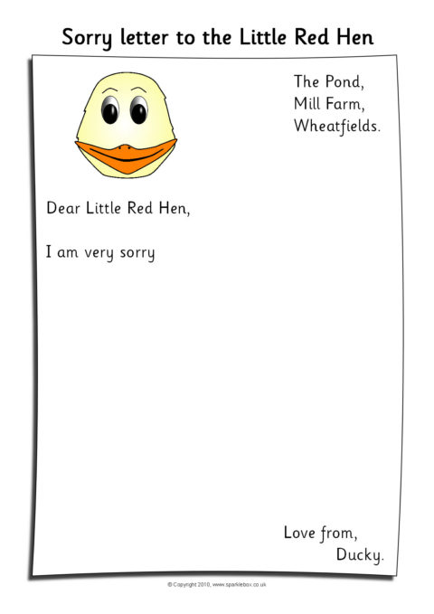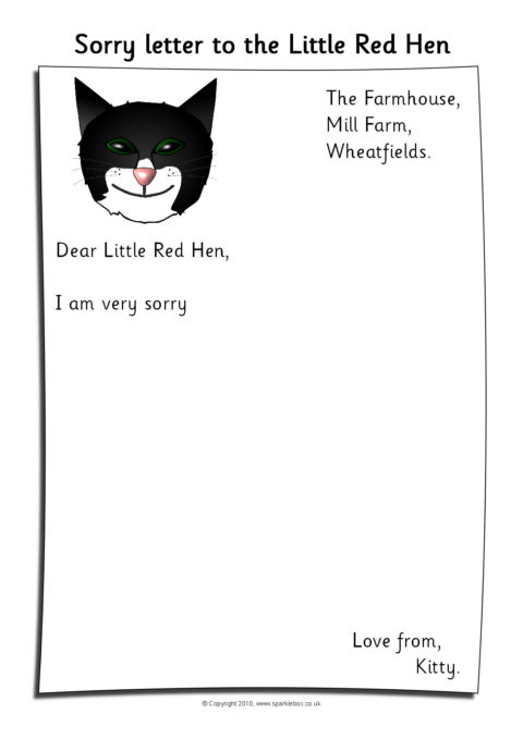 Three sorry letter writing templates from the duck, cat and dog to the Little Red Hen.