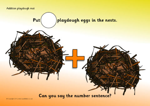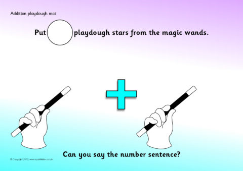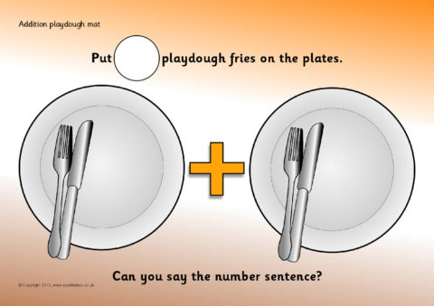 A set of A4-size playdough mats. Children make playdough items to match the number you write in the circle and then say the number sentence.